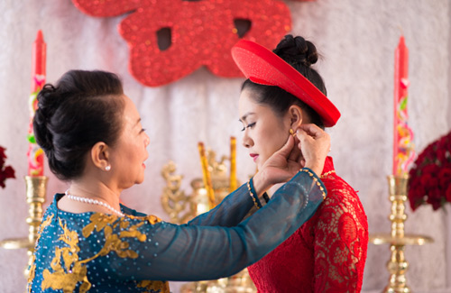 Hoa tai đính hôn – Câu chuyện “Của làm tin”: Trong văn hóa của người Việt, đôi bông tai được mẹ chồng trao cho cô dâu vừa mang ý nghĩa đón chào nàng dâu bước vào gia tộc nhà chồng, vừa thể hiện niềm tin nàng dâu mới sẽ là sợi dây liên kết yêu thương và mang lại đời sống hôn nhân hạnh phúc, tránh xa những thị phi trong cuộc sống.
